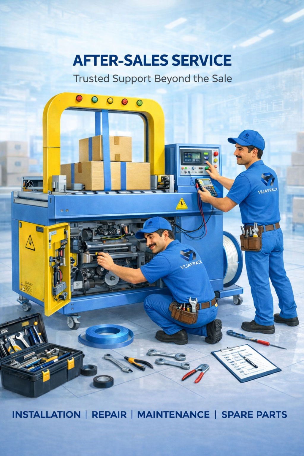 At Vijaypack, we believe that our responsibility goes beyond just supplying packaging machines, tools, and materials—we ensure they continue to deliver peak performance throughout their lifecycle.